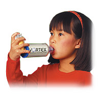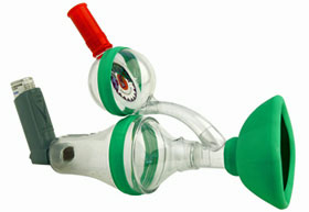 AのpMDIによる吸入療法は、吸入する際の手技が幼児や年長者には難しく、上手に吸入を行うことが出来ません。この吸入操作を円滑に出来るように開発された補助用具が「スペーサー」です。スペーサーの語源は、英語のスペース(空間)です。 |